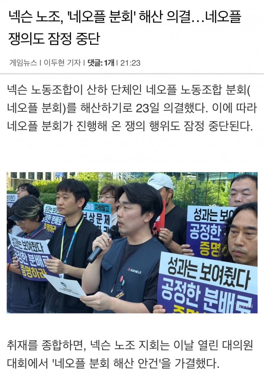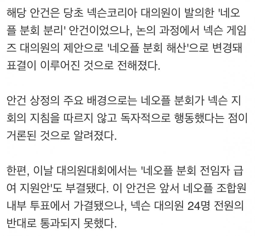 원래는 넥슨 지회에서 네오플 노조를 분리하는건이었으나