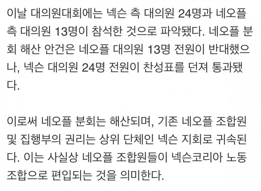이로써 네오플 노조원들은 모두 넥슨코리아 노조에 편입됨