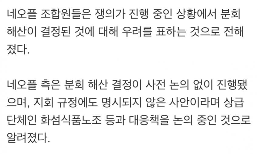네오플 노조측은 전원 해산에 반대했으나