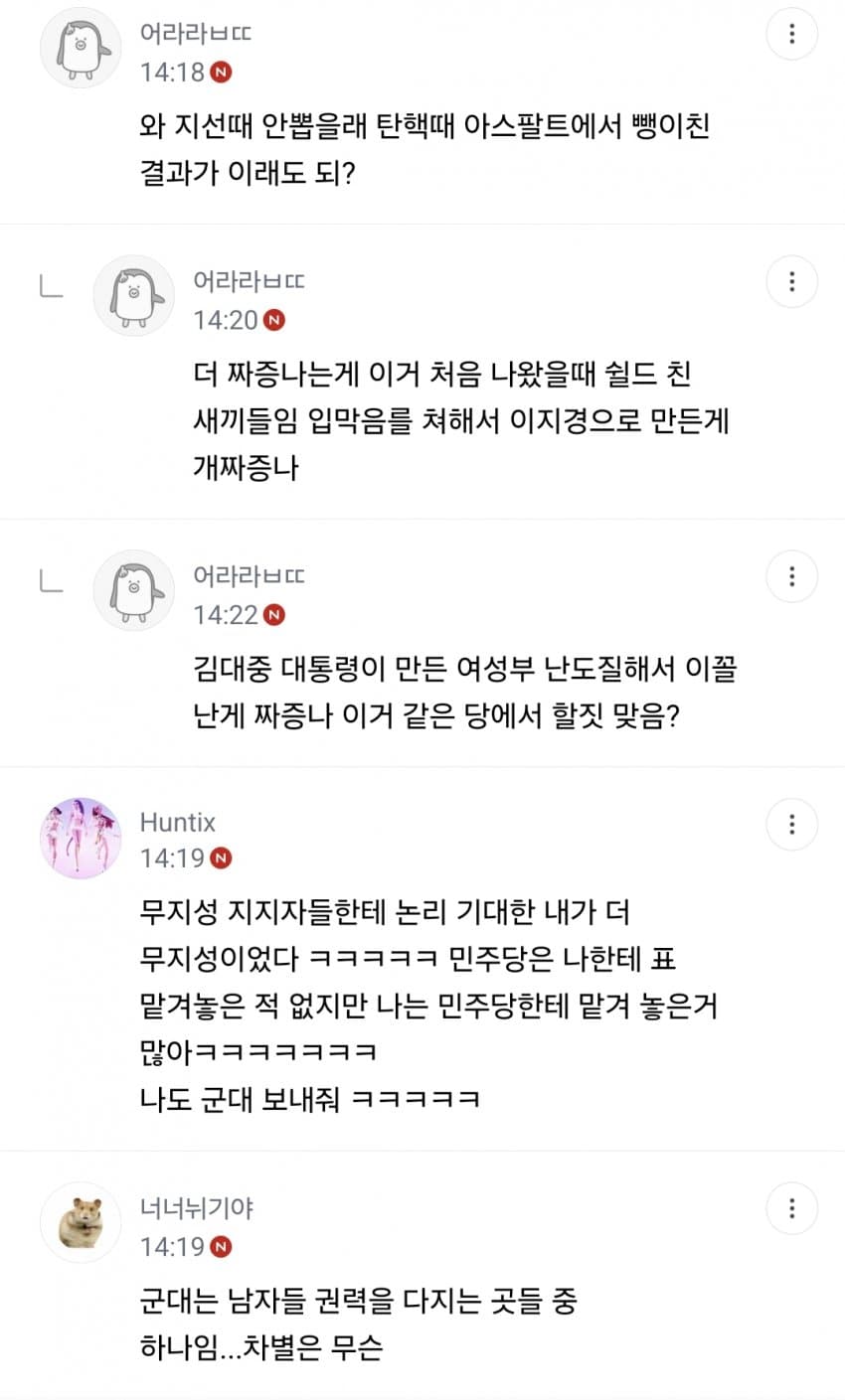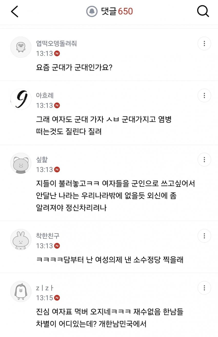 아줌마들 자기는 군대 안간다고 막 지르네.
