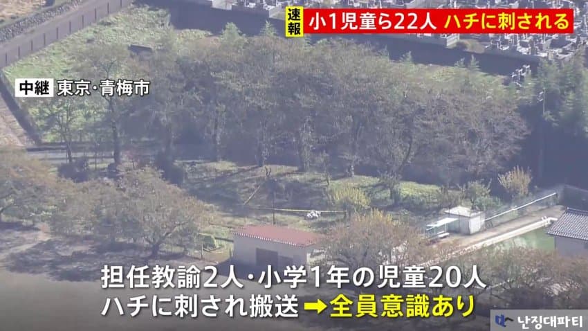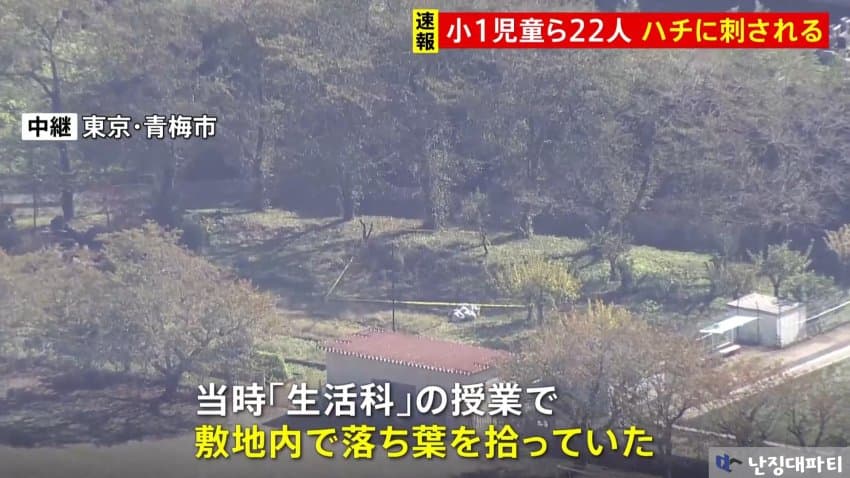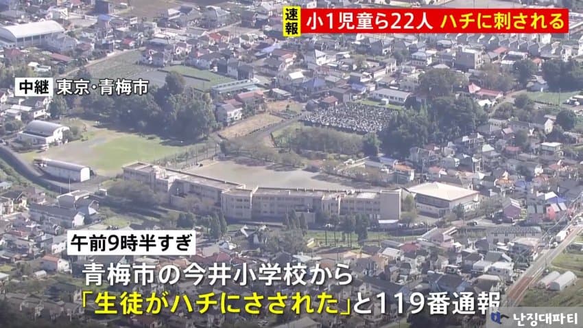 오전 9시 반 경 일본 도쿄도 오메시의 이마이 초등학교에서 학생들이 벌에 쏘였다는 신고가 119로 접수됨
