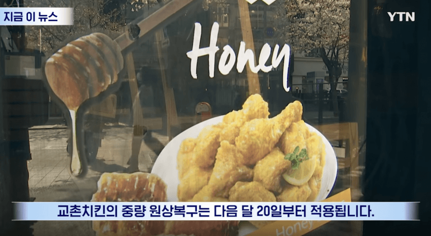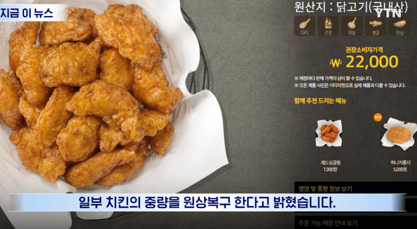 가격을 못올리게 하니 양을 줄인건데 과자처럼 티가 안나는거도 아니고 걍 가격을 올리지 치킨값으로 유독 지랄하더라
