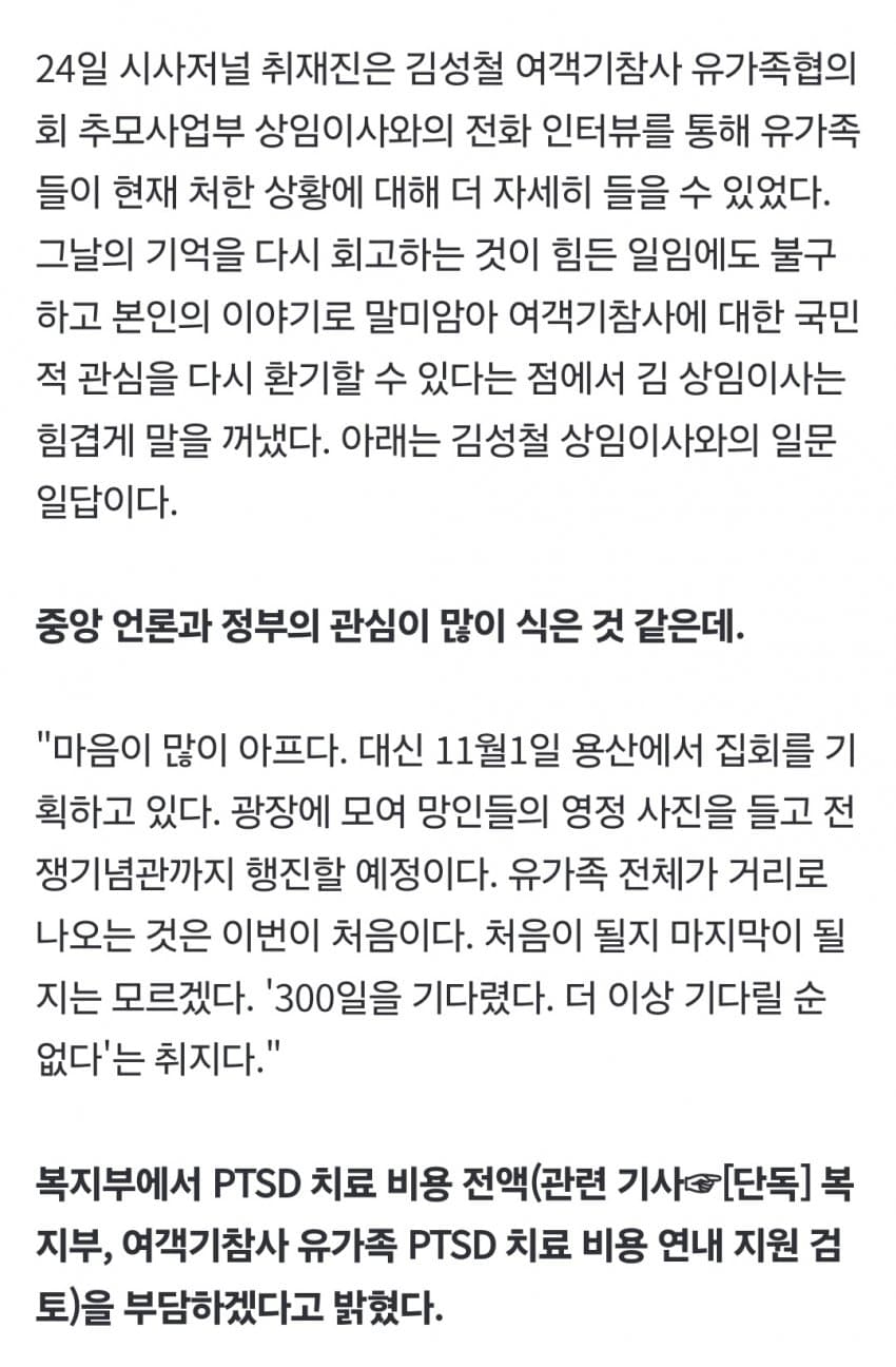 세월호 이태원때처럼 정부가 유족들한테 사람붙여서 사찰하고 수사방해, 진상조사방해하진 않으니까