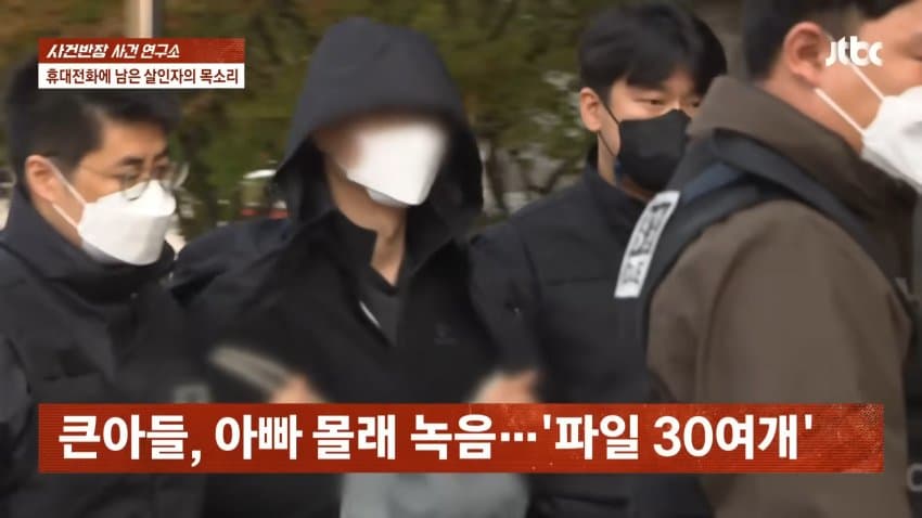 바로 범핸 현장에서 녹음상태로 켜져있던 아들의 휴대전화가 발견된 것