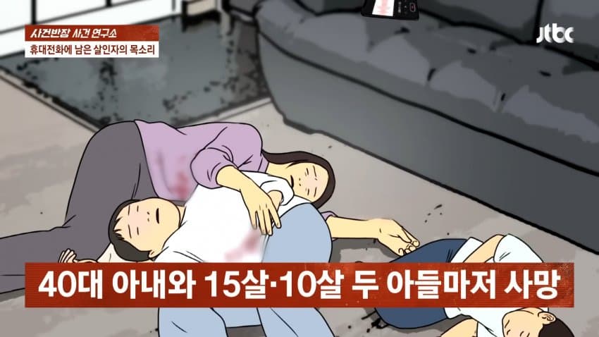 40대 아내는 물론이고 15살 장남과 10살 차남까지 전부 죽은 상태였음