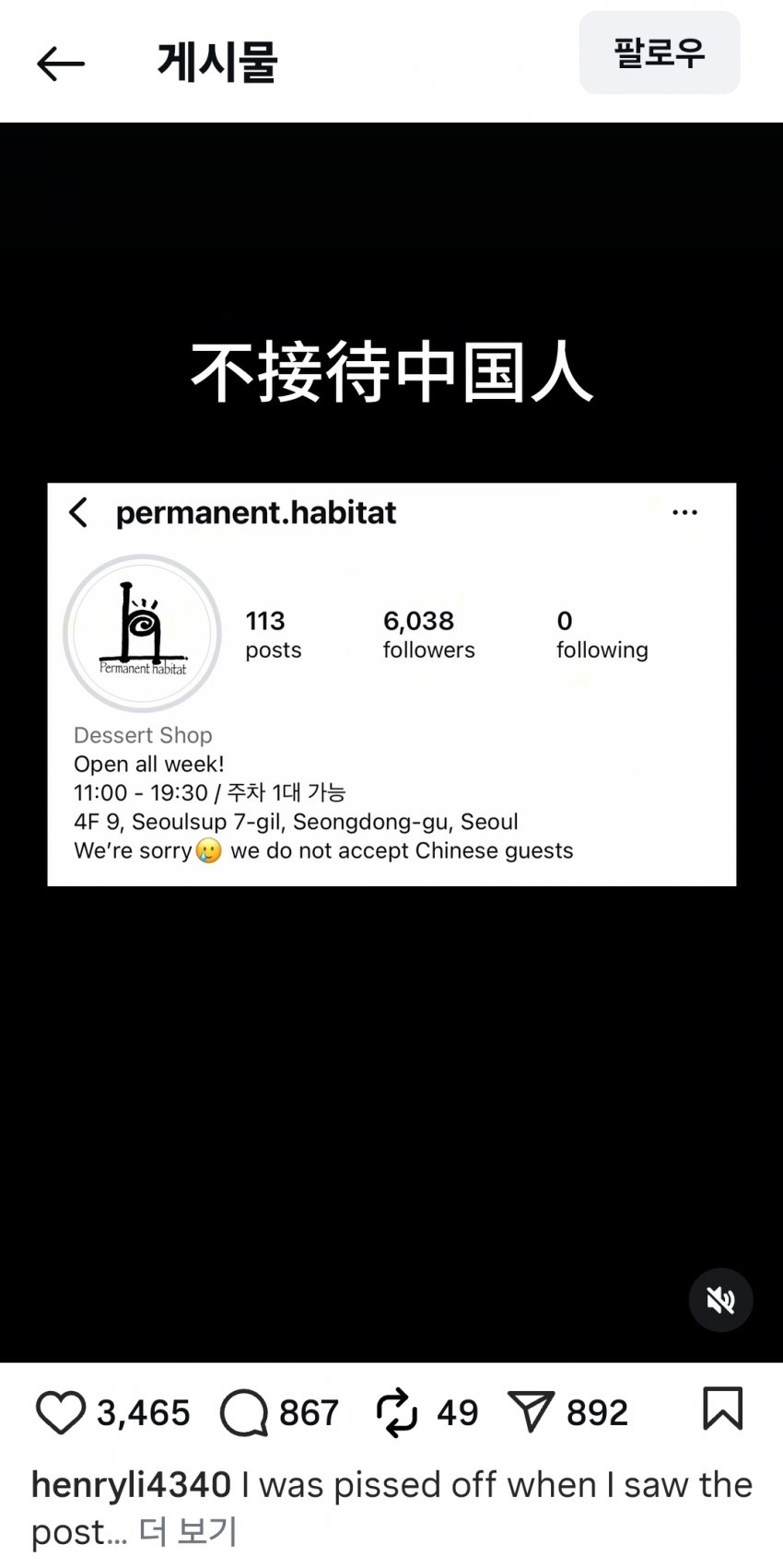 중국인들 중국말로 시끄럽게 굴어서시끄러운 애들은 오지마세요 하는 노키즈존 하고 같은데 이게 왜 문제임??그리고 이게 맘에 안들면안오면 되잖아 왜 꾸역꾸역 옴??
