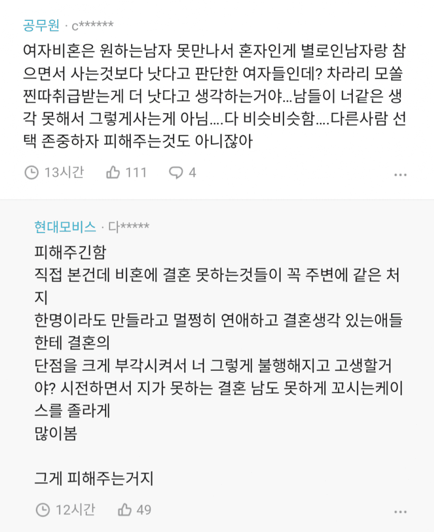 남자나 여자나 비혼의 미래는 둘다 어두워..30대 40대 초반까지 어떻게 버틴다 치자40대 중반 넘어가는 순간둘다 어우야다