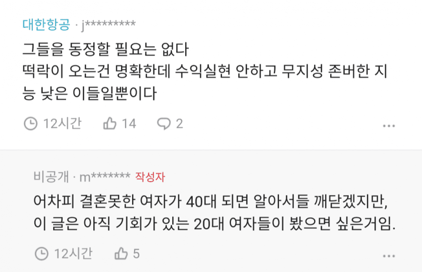 우리 불쌍한 황금세대 M세대들아 우린 기회가 없어서 시기를 놓치고 때를 놓쳤을 수도 있어 그래도 아랫세대한테 아직도 골드미스 타령하면서 가스라이팅 하거나 그러진 말자