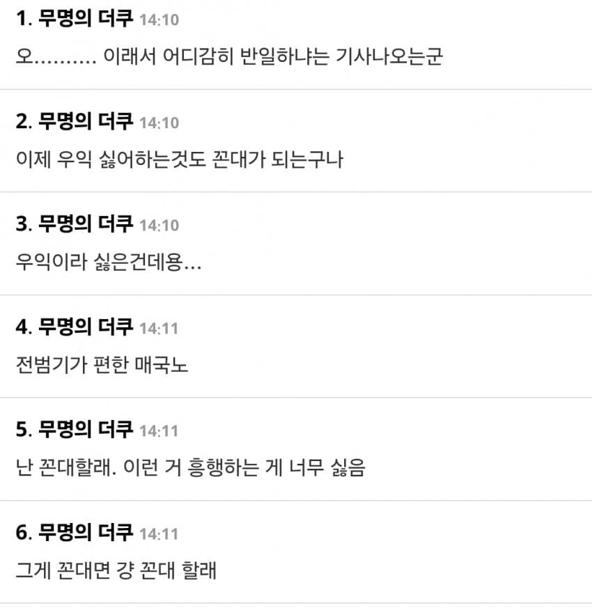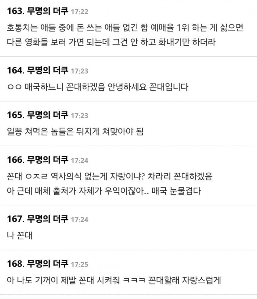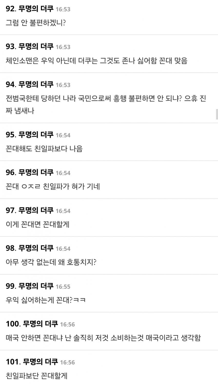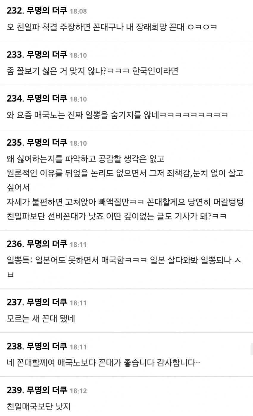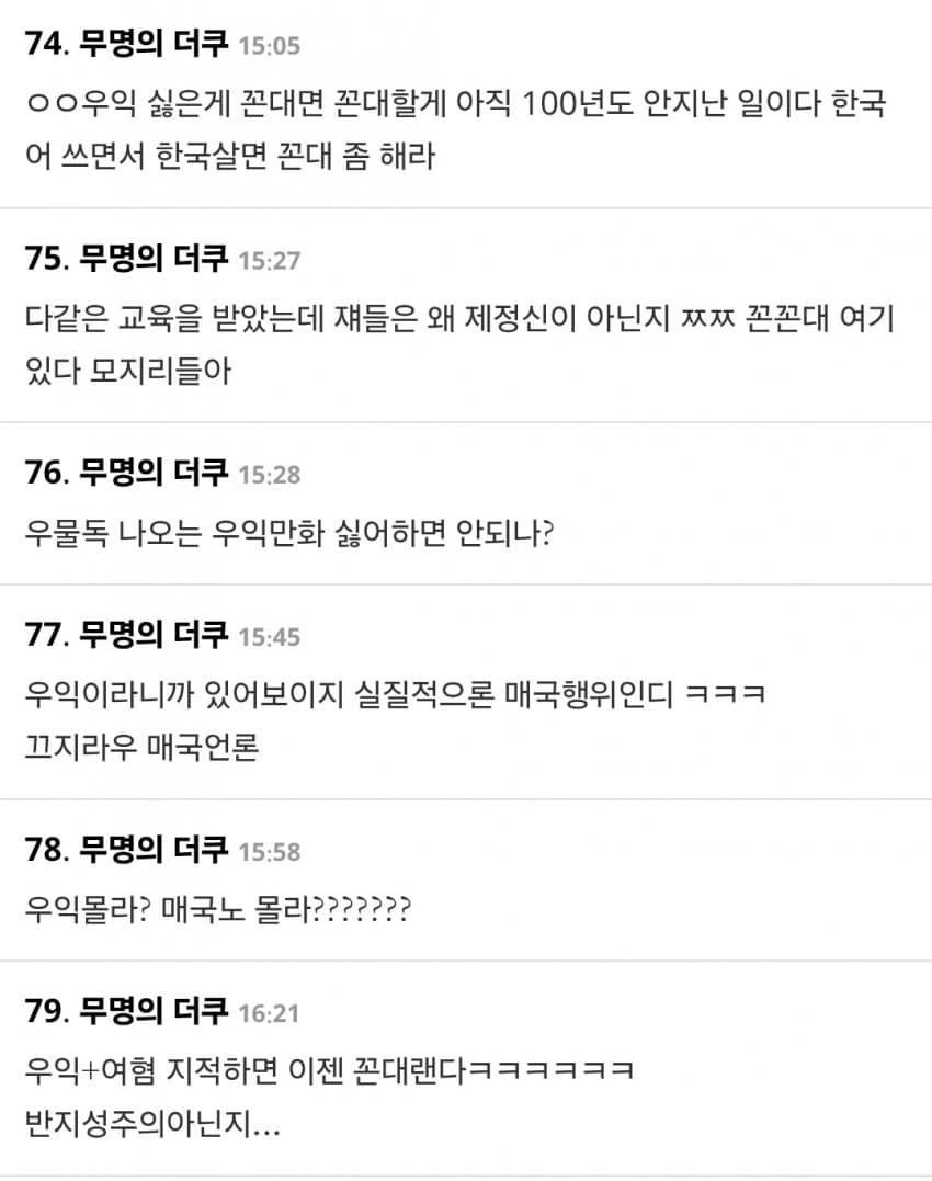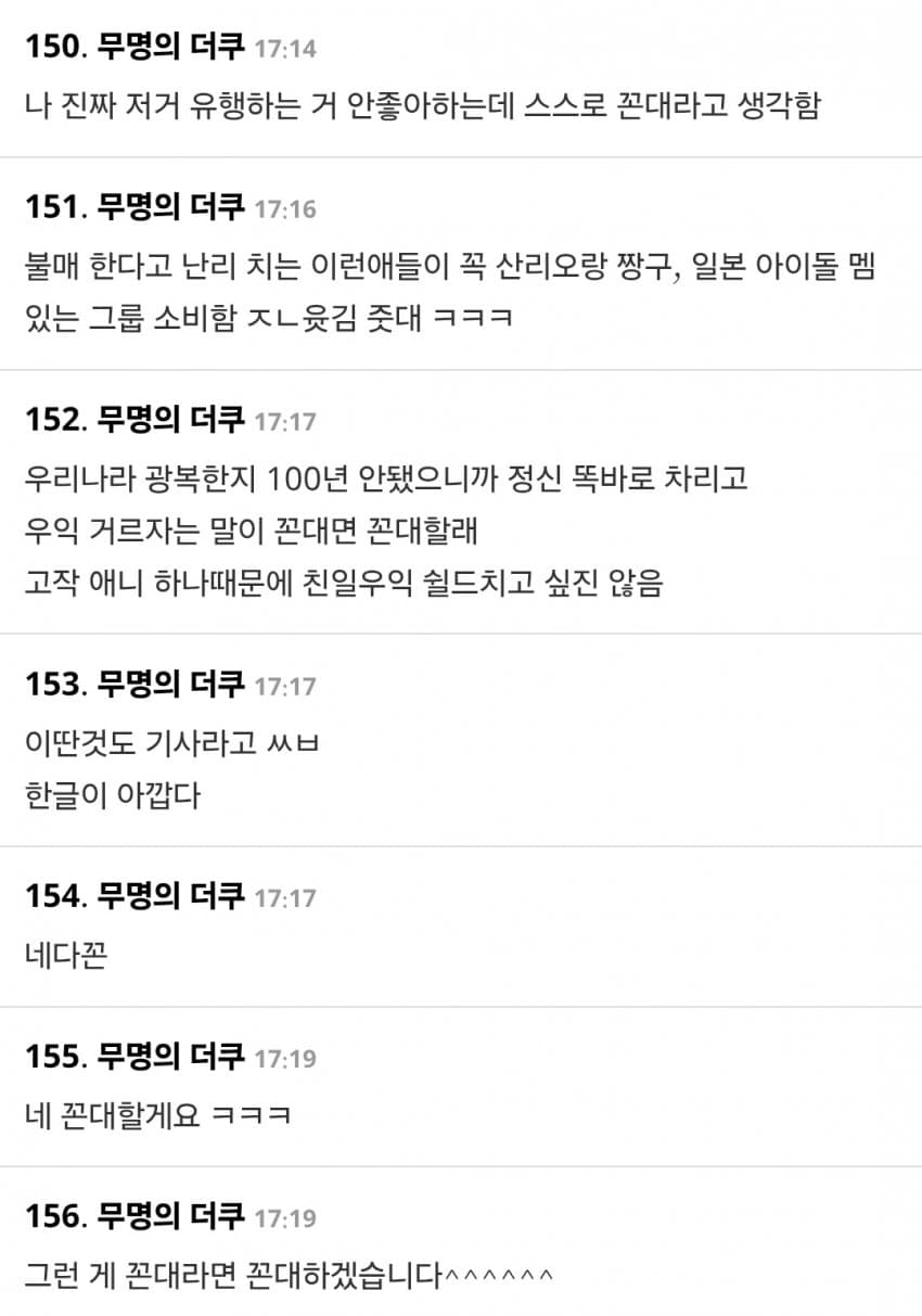원래 더쿠가 일본음악 커뮤니티인데 국뽕년들 테라포밍 하고 반일 타령하며 다 쫓아냈으면서 못하는 말이 없노