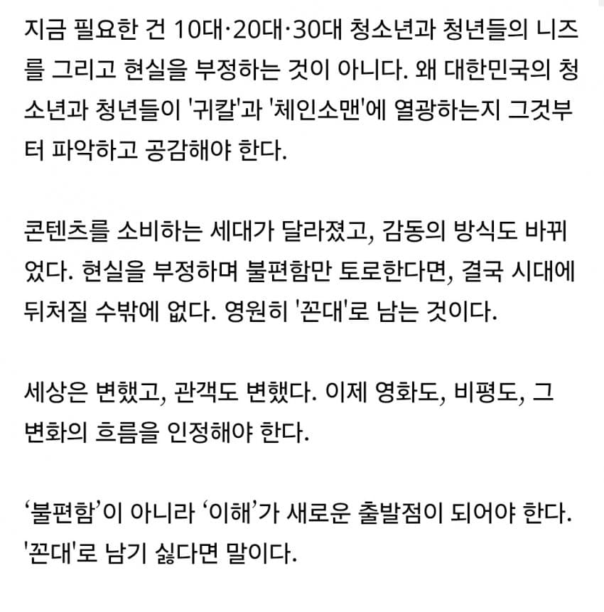 아니 더쿠 쟤들은 나잇대부터가 개꼰대 맞자너40대 이상 팔릴 일 없는 노괴들만 모인덴데
