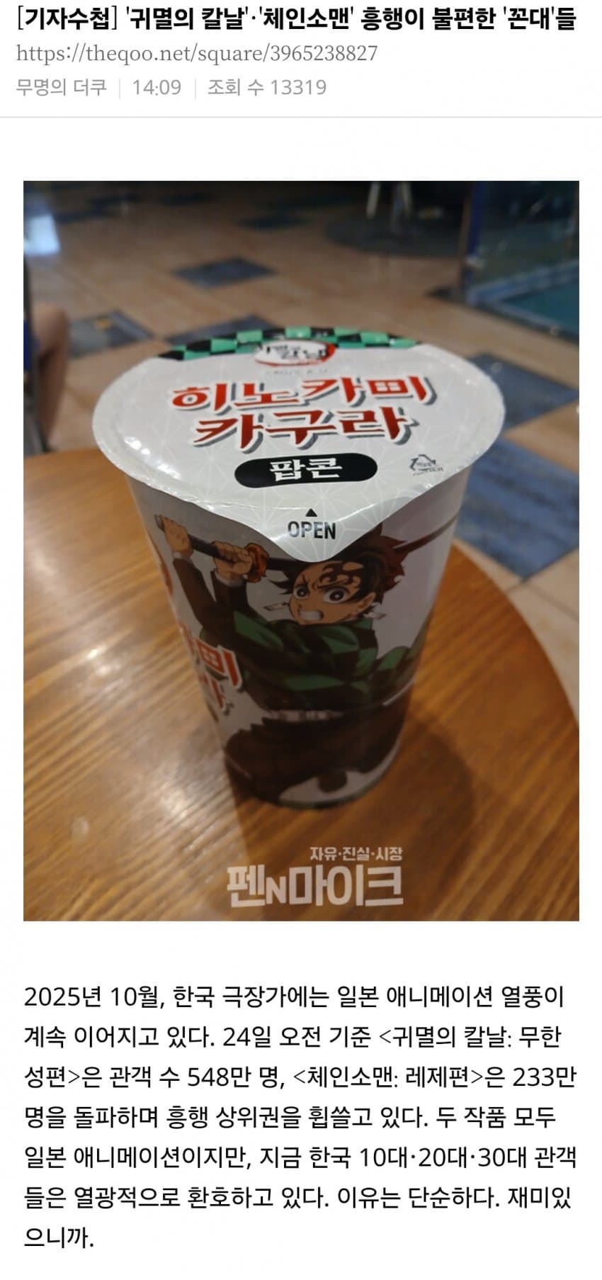 귀칼, 체인소맨 영화관 성비는 대략 6:4 정도로 1020 여자관객들이 많은 편이다.그리고 발작 중인 더쿠의 나이대는..