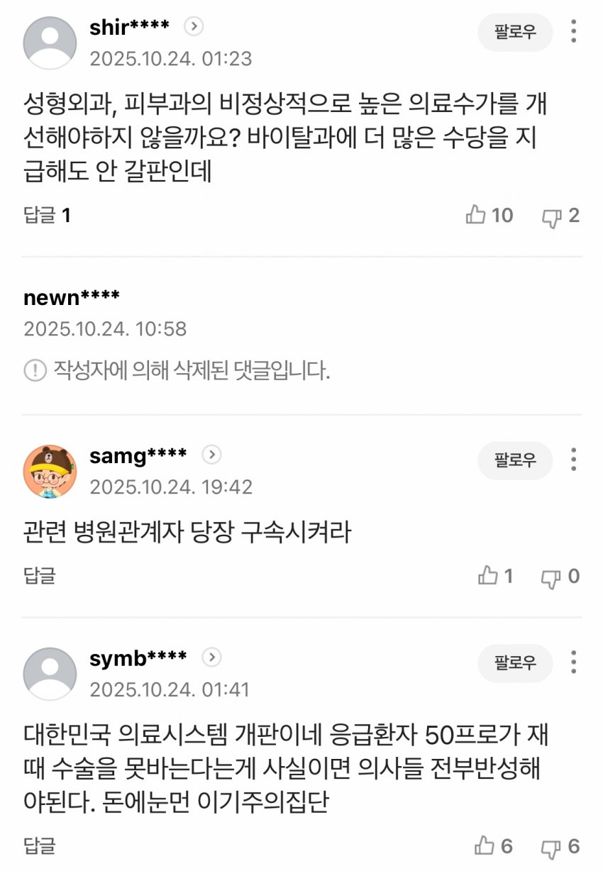 '사람살리는쪽으로 지원 쏟고' 여기까지만 해줘도 할놈들 넘친다고 ㅅㅂㅋㅋㅋ그 당연한걸 시작점을 안 하고 자꾸 뭘 의사를 더뽑니 다른과를 망하게 하니그러면 의사 다 망해서 울며 겨자먹기로 사람살리는거 하니 마니 아직까지도 이러고 자빠졌는데얼어 뒤졌다고 사람살리는쪽으로 가겠음?