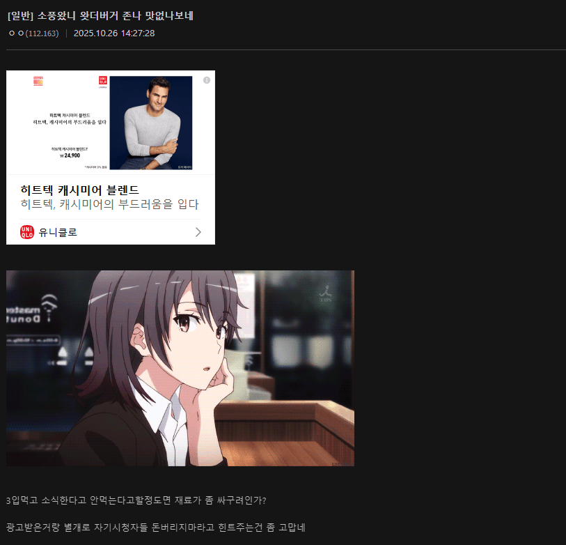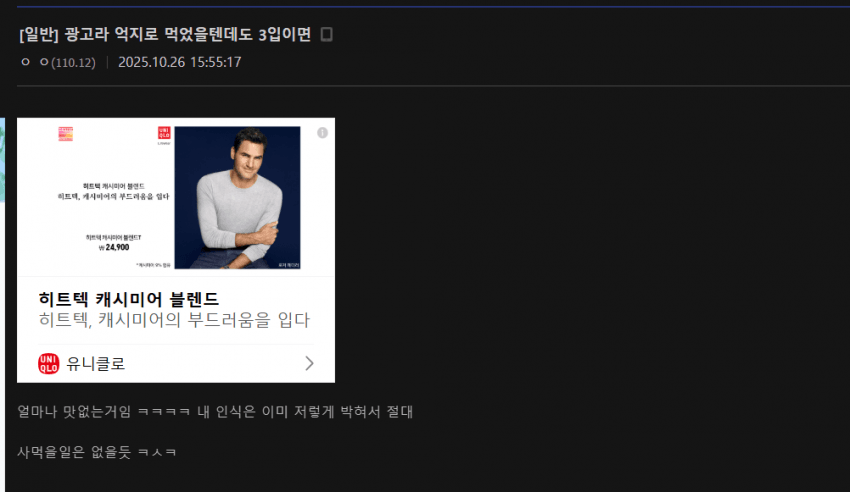 그런데 3입정도 먹은다음에 갑자기 광고 -완- 선언을 해버림...