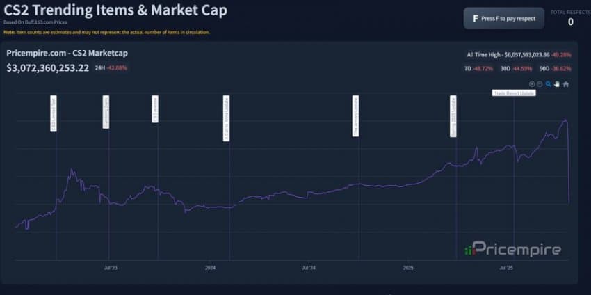 카스 스킨 시장은 시총 42억 달러를 돌파했고 얼마 전까지만 해도 거의 60억 달러에 육박했을 정도로 규모가 큰 시장임