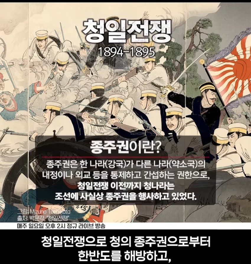 임오군란 이후 체결된 조청상민수륙무역장정(1882) 전문에 대놓고 중국의 속방(속국)을 우대한다고 표현 1조는 조선국왕과 중국의 북양대신이 동급으로 인정받고 있다 2조는 조선인이 중국에서 범죄시 중국법으로 처벌, 중국인이 조선에서 범죄시 중국법으로 처벌한다는 노골적인 치외법권 조약이다 반일조선뽕은 정신병