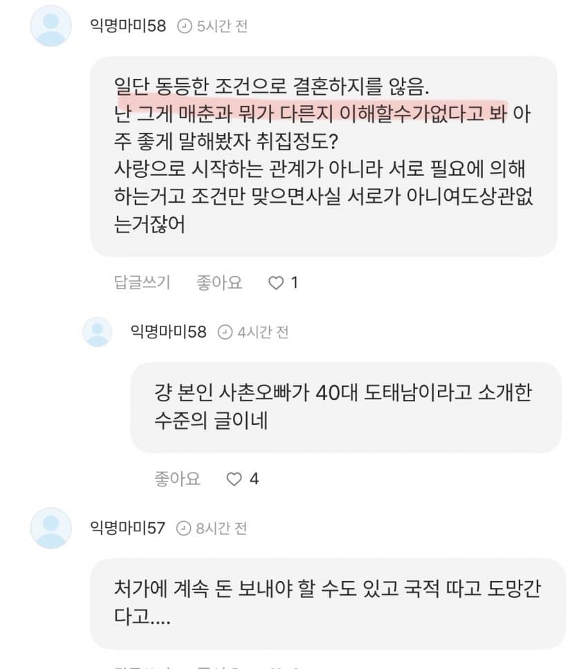 국결은 매춘이랑 다를게없다는 아줌마 입갤 ㅋㅋㅋㅋ