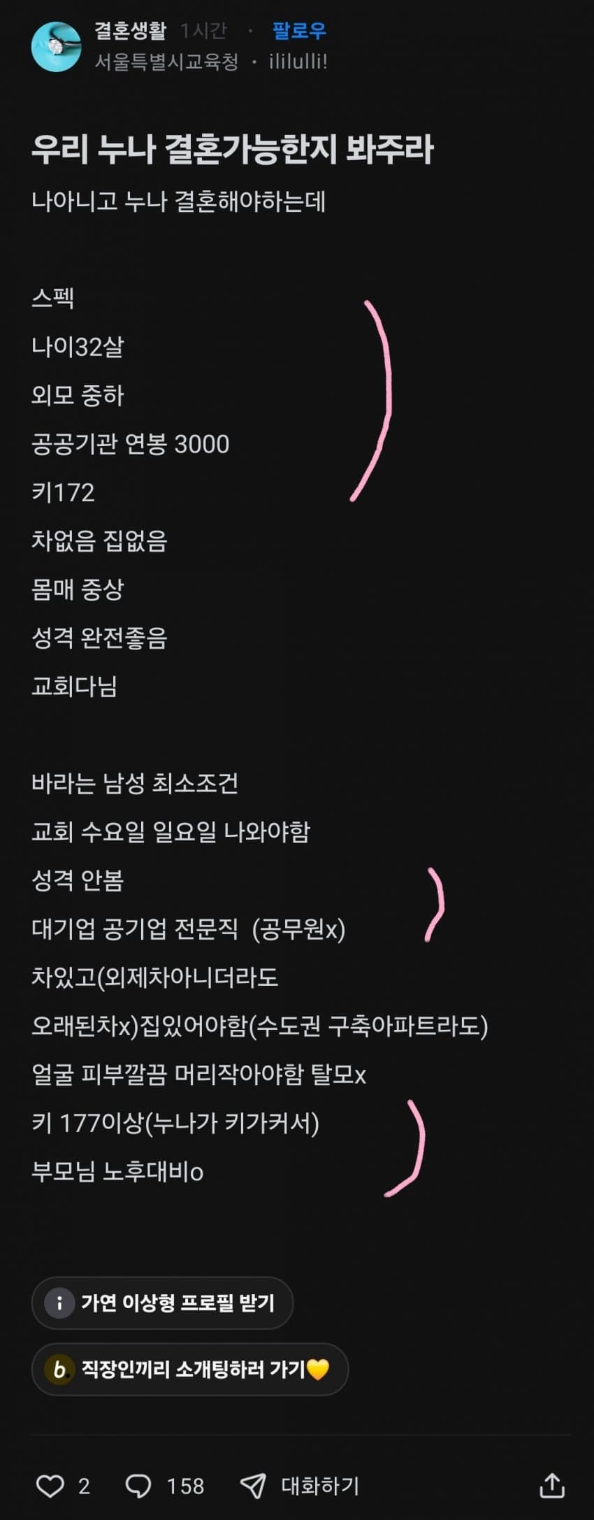 수도권구축아파트라도 가진 177이상 부모님 노후대비 된 대기업이상 이거 4가지 다 갖추기가 ㅈㄴ빡쌤