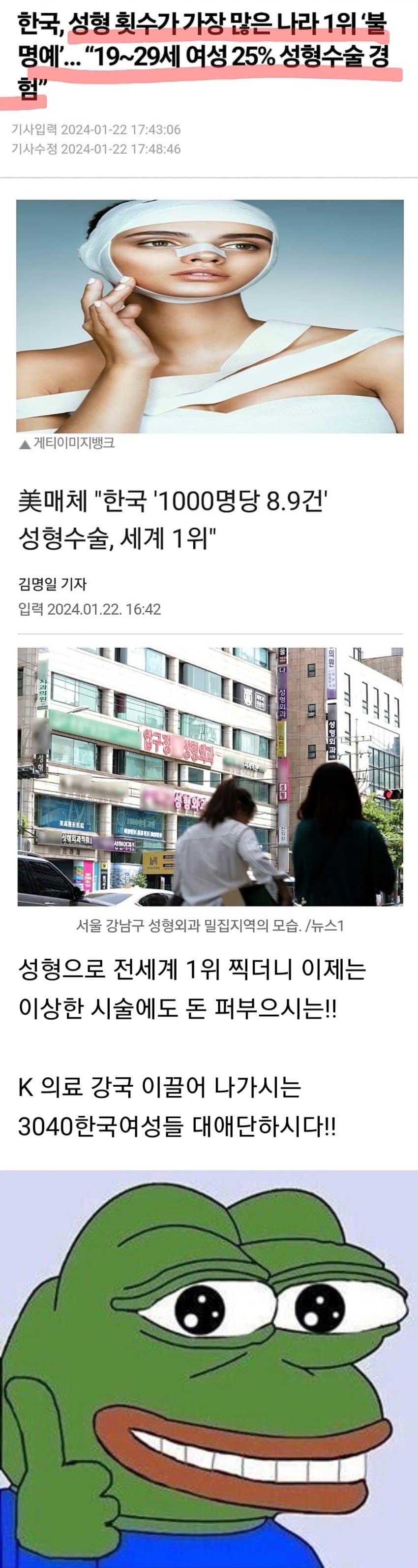 의새들이 멍청한년들 속여서 폭리취하는거 좀 막아야 하지 않음?? 저런걸로 폭리취하면서 그게 자기들이 정당하게 번 돈인줄 알고 수가를 저만큼 늘려달라는 개소리 하면서 증원 반대하잖아.(그 수가도 국민들이 낸 세금임.)
