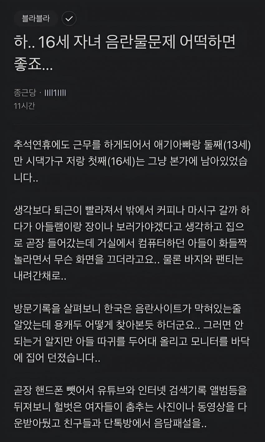 성인이 되어서도 음란물은 절대 싫습니다=성인이 되서도 통제하겠다는 뜻 저 자식은 애미랑 원수질게 분명하다