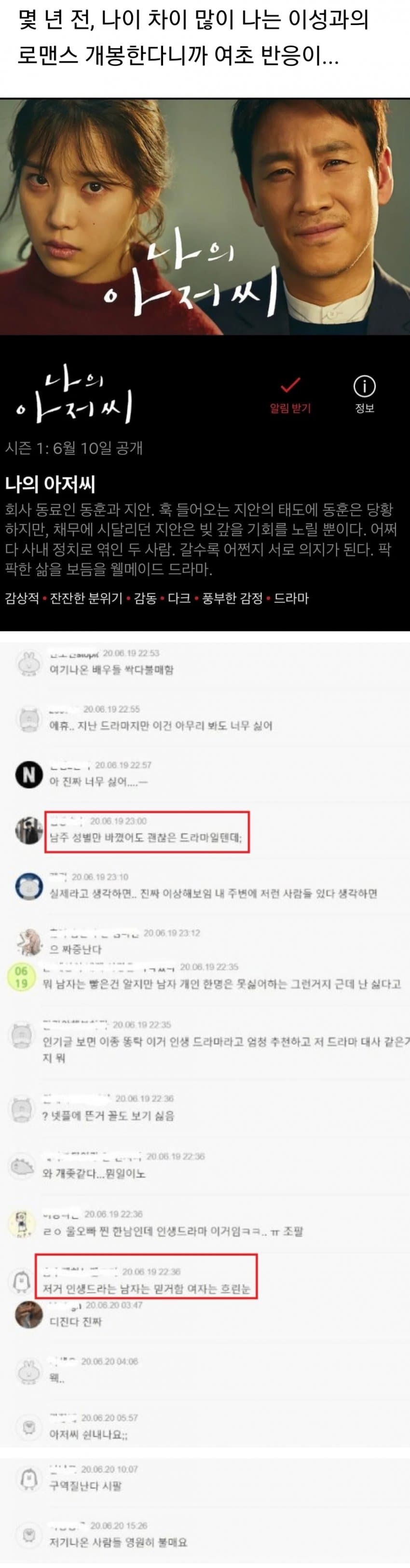 나의 아저씨는 애초에 둘이 로맨스조차 없음 드라마도 안 보고 무작정 까는 노괴년들이었음