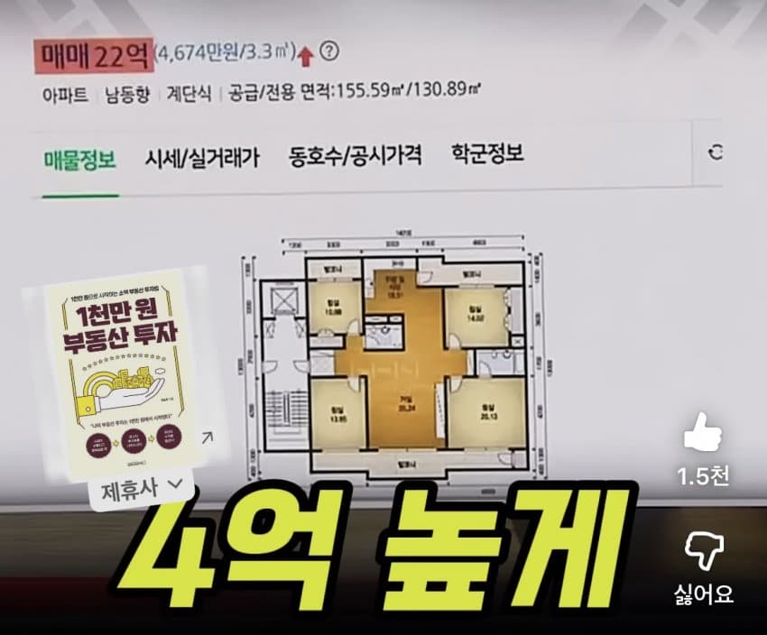 시세 보다 4억 높이 내 놓았다는건 안 팔겠다는 거잖아 국민을 ㄹㅇ 바보로 보네