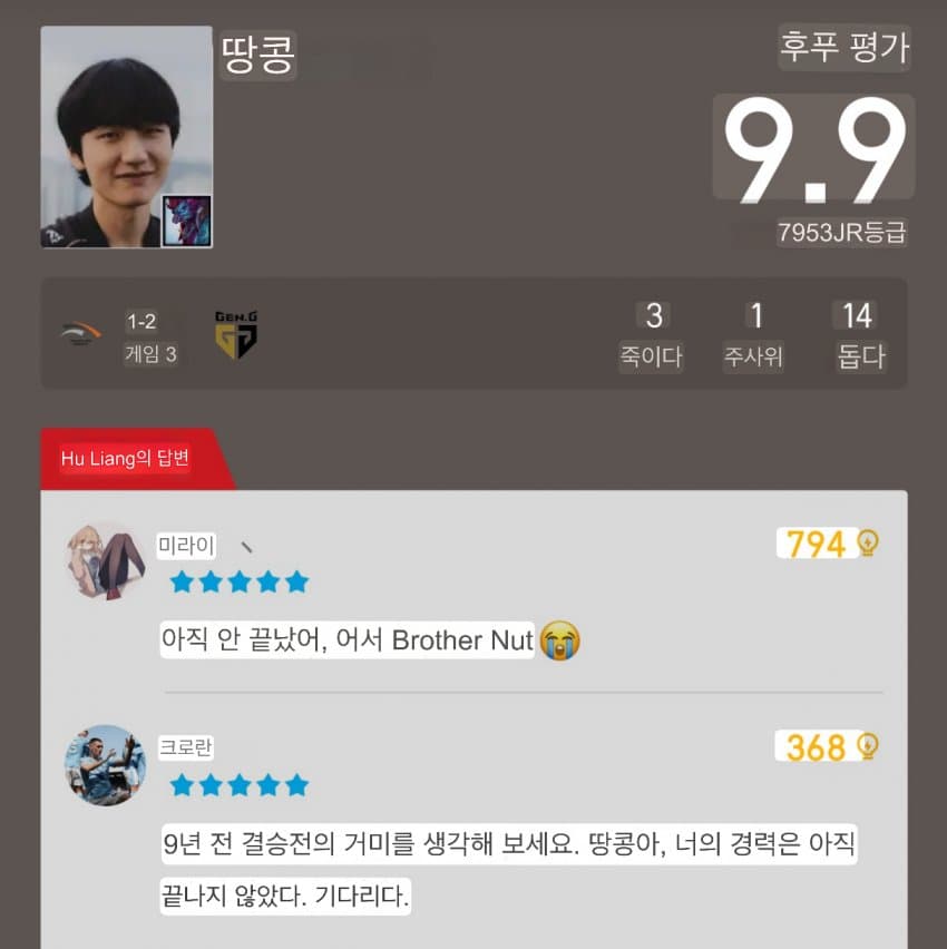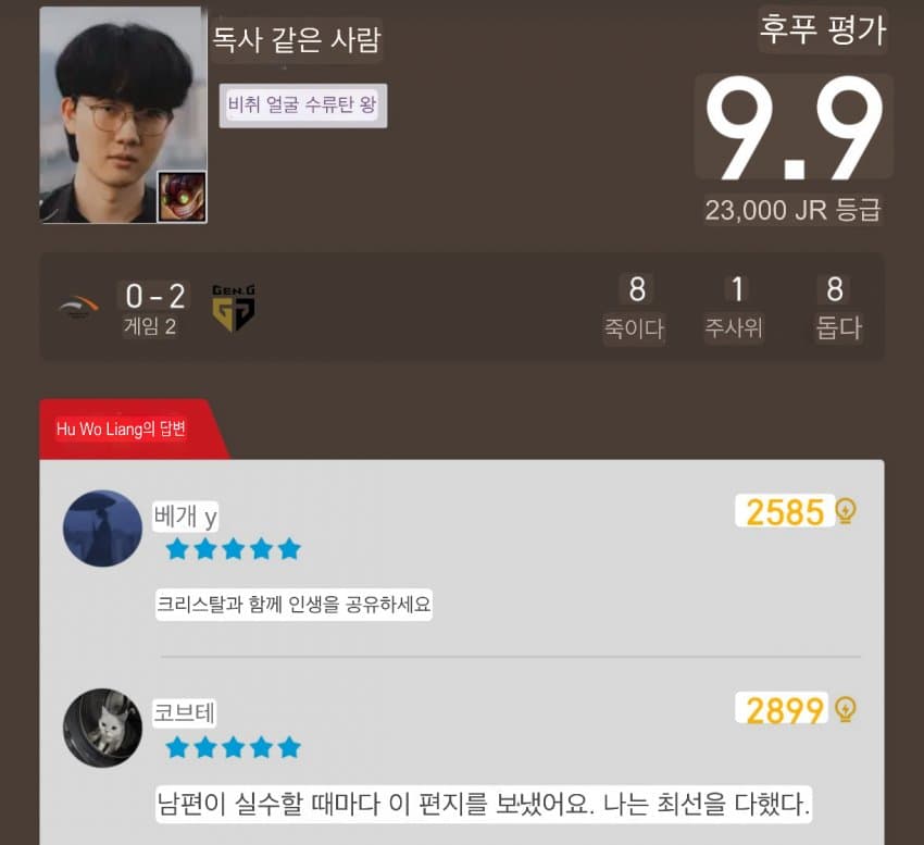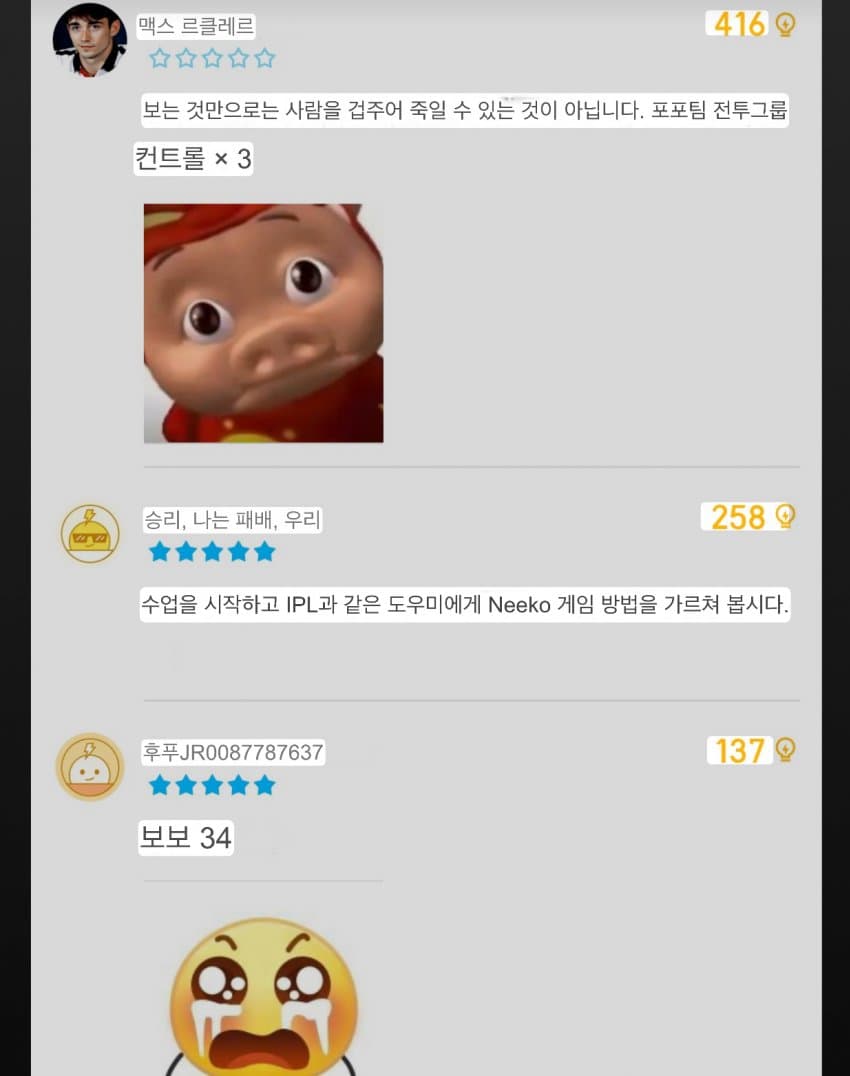 즙푸에서 팔팔이 평점으로 바꼇네 쵸비가 뭘잘했다고 9.5점임 백번양보해도 시발아 제일 점수 높은게 말이 됨?