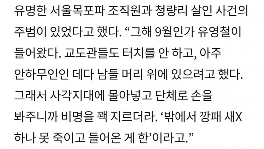 "여기서 조폭과 경제사범 한 명을 반드시 죽이겠다"