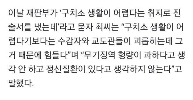 수감자랑 교도관이 괴롭혀서 힘들다고 함