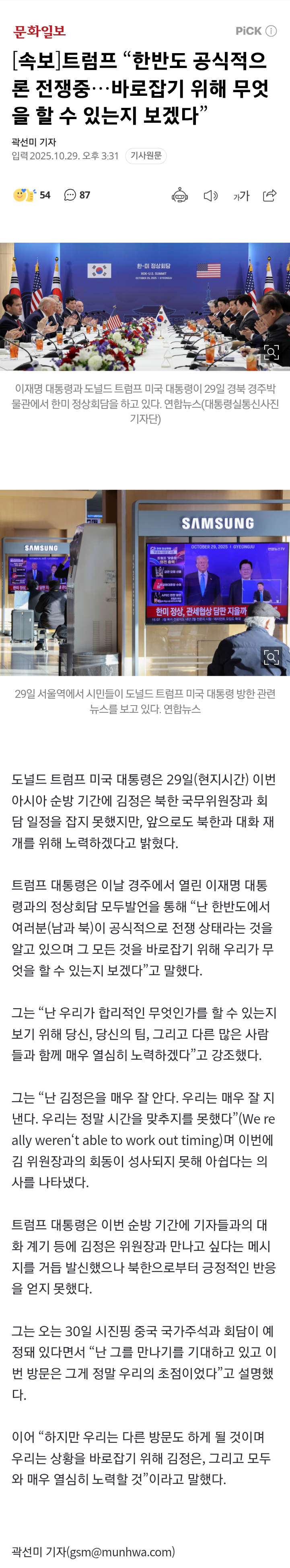 종전은 좋은게 아닌데? 종전을 하려면 북한을 국가로 인정해야하는데 이러면 굉장히 복잡해지는데 이거