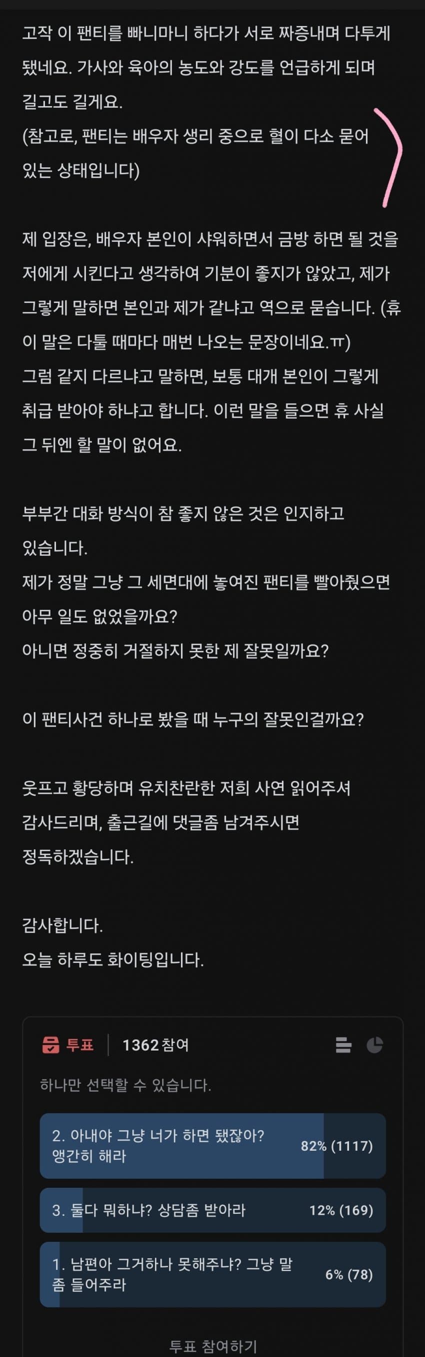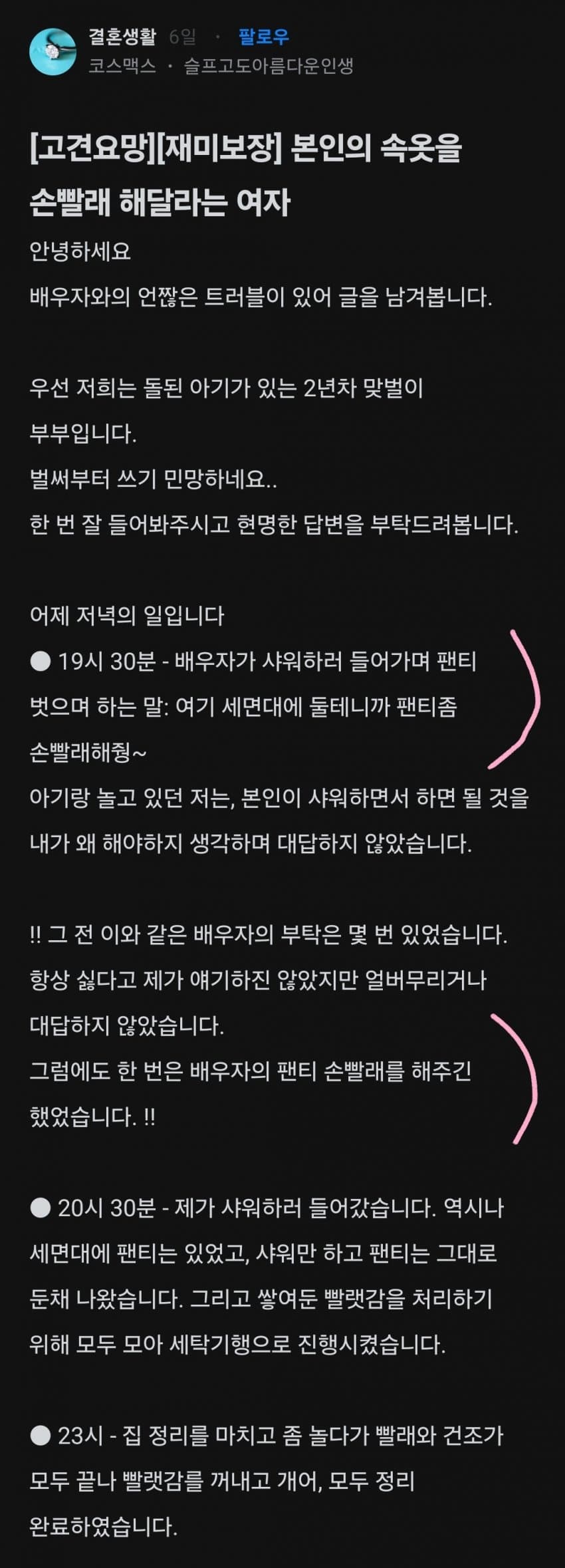 남편이 우습거나 진짜 편한가보다 ㅋㅋㅋ 분비물 묻은 팬티 손빨래? 부끄럽지도 않노 ㅋㅋ