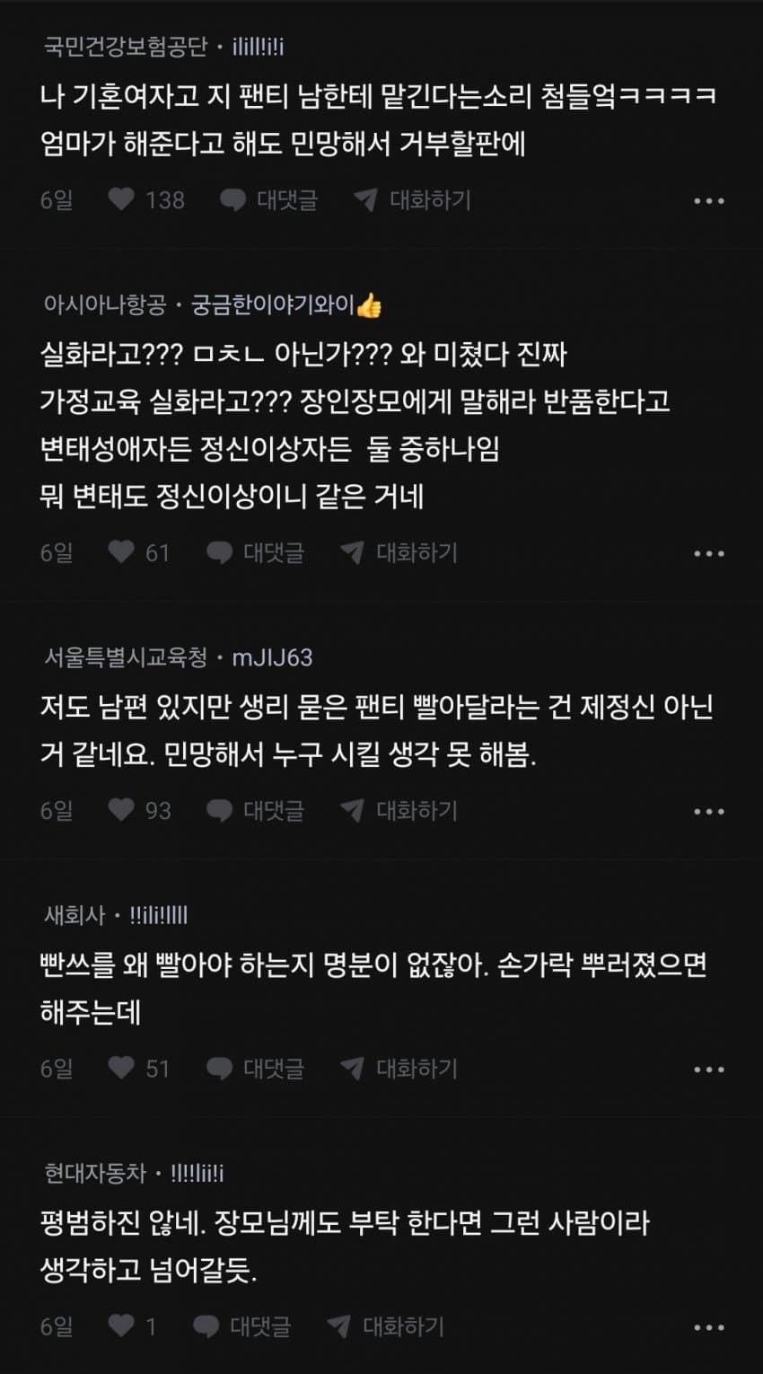 기출변형이겠지 설마ㅋㅋㅋ 남편 똥팬티 빨기 싫다고 광광대는 줌은 봤어도 이런건 처음임