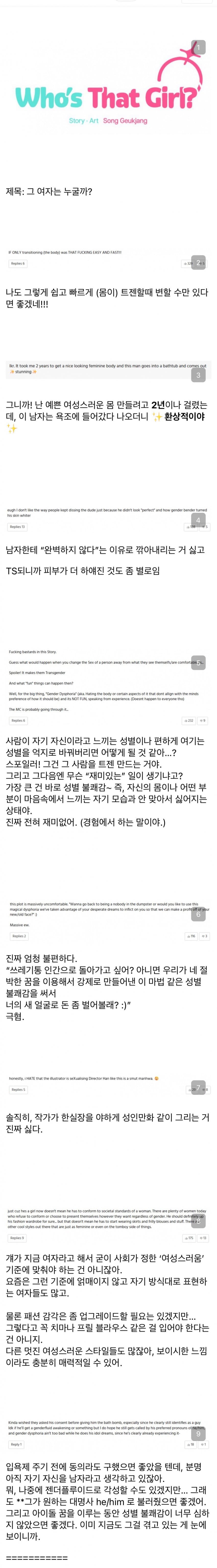 일본 ts물에도 비슷한 반응이 가끔 나오긴 하지만 어찌되었건 일본 서브컬쳐는 주소비자층이 남초인데 k문화 소비하는 해외 외국인들은 대부분 한국 아이돌 팬덤을 시작으로 한 여성들이고 주류문화에 대응하는 대안문화, 서버컬쳐로 소비하고 있다보니 pc력이 훨씬 강하지. 한국에 대한 정보를 얻는곳도 더쿠나 여시, 트위터 같은 곳이고 여초발 젠더이슈도 여과 없이 그대로 받아들임