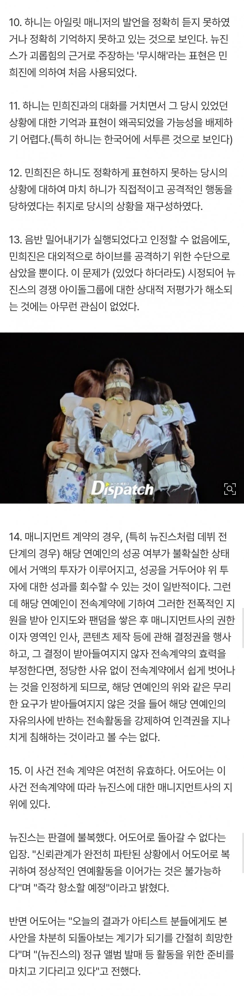 과연 민줌의 선택은?세종도 거대로펌이라 비용 장난 아닐텐데 수십억 정산 받은거 이런식으로 날려먹고재판은 패소하고 계약기간은 4년이나 남았고 항소한다해도 이길 가능성 없어 보이고4년 후에 애들 데려간다해도 아이돌 평균 수명이 7년인데사실 이것도 말이 7년이고 4,5년차부터 개인활동으로 전환됨