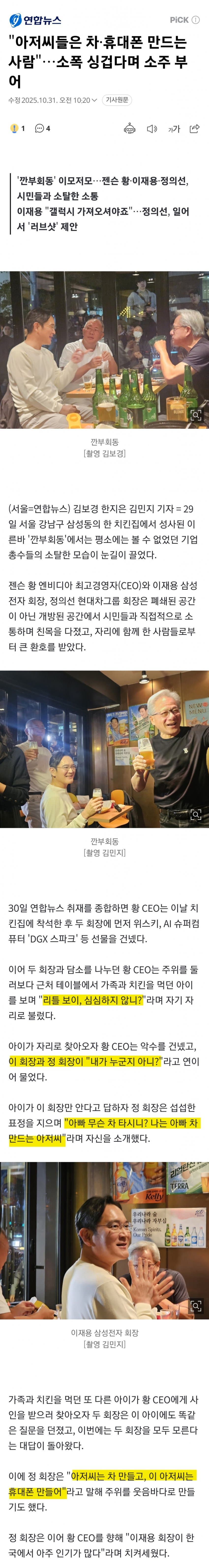궁금한게 이재용은 폰 만드는 아저씨 정의선은 차만드는 아저씨 비유할 수 있는데 젠슨황은 뭐 만드는 사람이라고 해야되냐?진짜 애매하지않냐?ㅋㅋㅋㅋㅋ