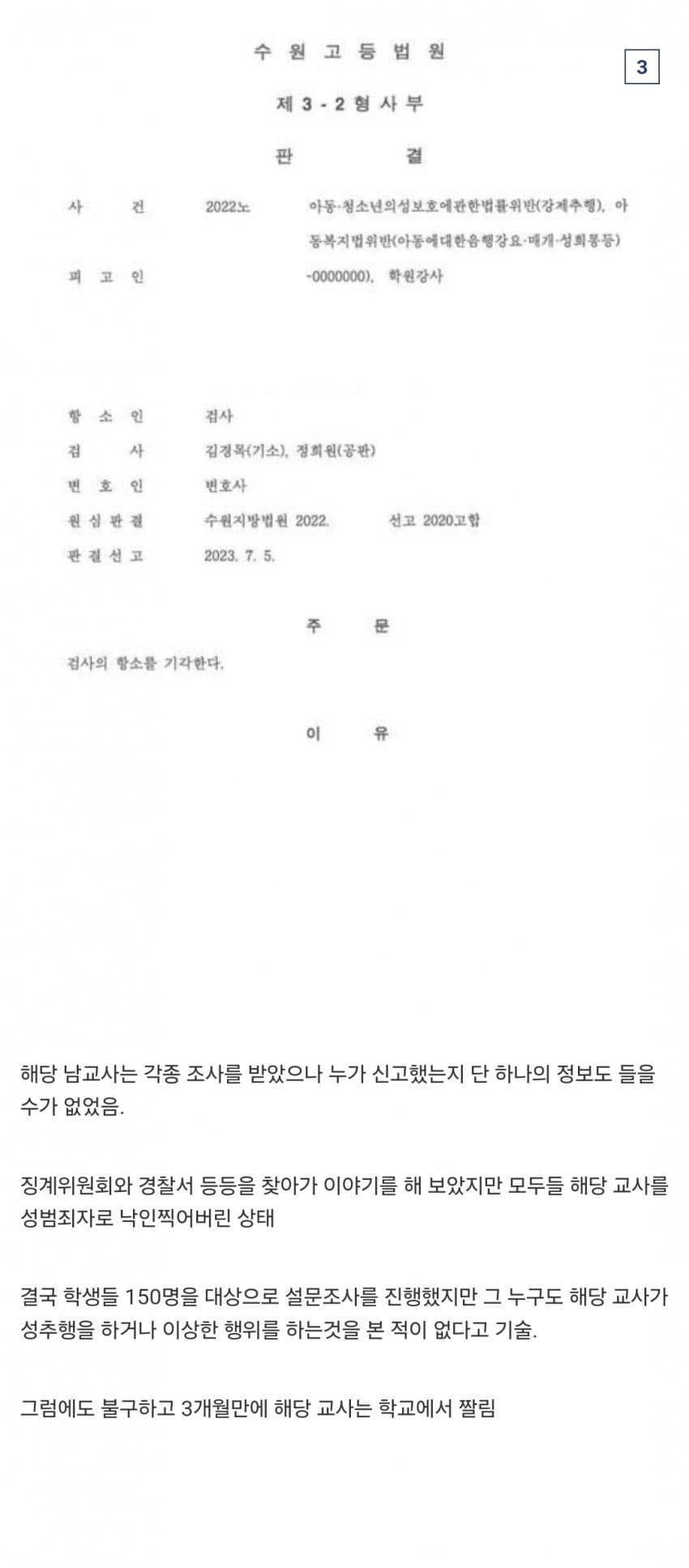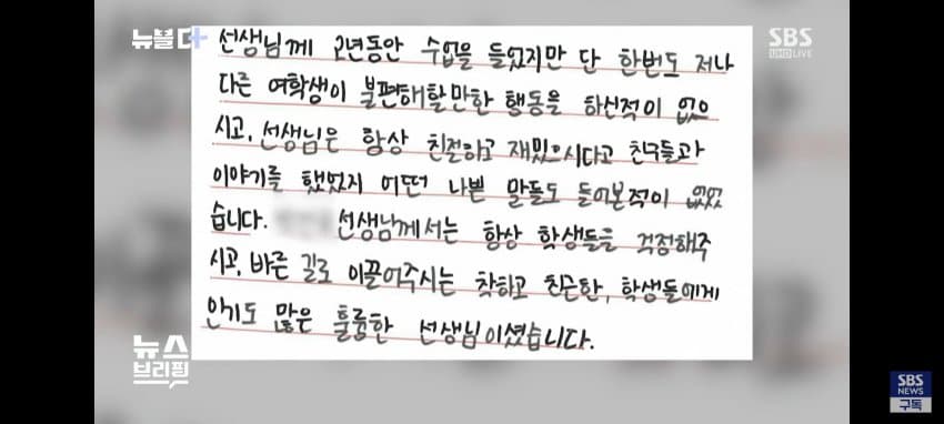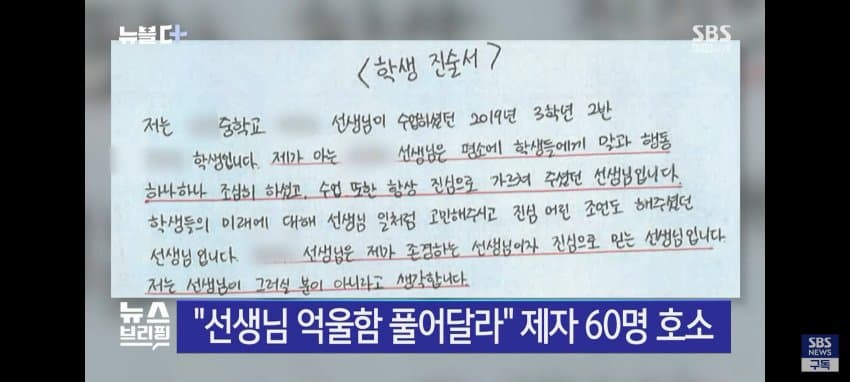 위는 사건 당시 해당 남교사는 죄가 없다며 학생들이 작성한 진술서들임