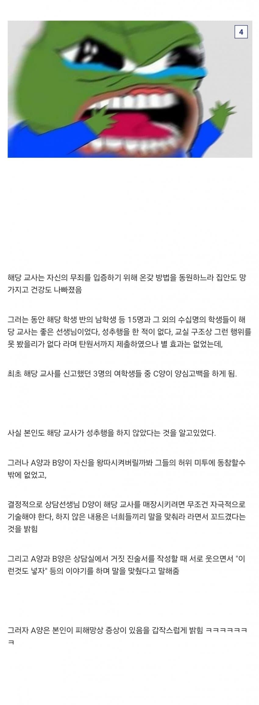 여교사는 조금 더 자극적으로 일관되게 진술해야 목표 남교사를 확실하게 학교에서 보내버릴 수 있다고 보다 자극적으로 진술하라 부추김 ㅋㅋㅋㅋㅋㅋㅋㅋㅋ