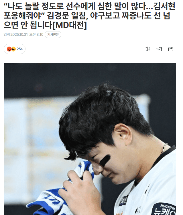 진짜 결과만보고 짜맞추기식 기사 역겹다 ㅋㅋㅋ 김서현이 마무리로 나가서 이겼으면 이딴소리 했으려나