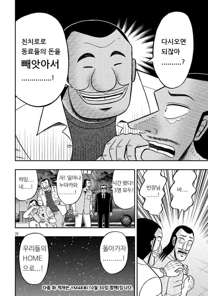 저렇게 훈훈한애들이 사기도박으로 등쳐먹는 거 본편에서 카이지한테 다 까발려지고카이지한테 반장이 가지고 있던 돈 전부 잃고저 부하 두 명 바로 반장 손절함 ㅋㅋㅋㅋ