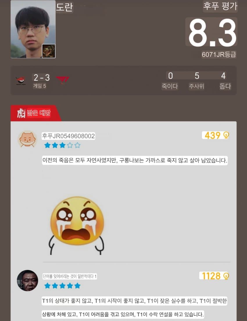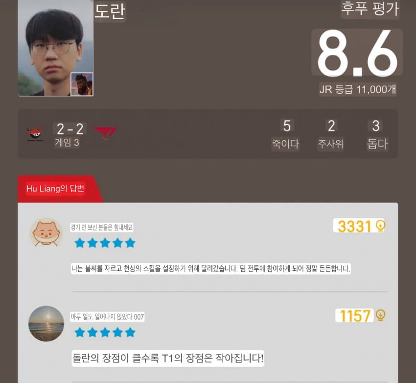 근데 물물물쮀쮀 아니었음? 왜 버스충 노인네 리핏 시켜준 역체롤 쮀는 8강이고 쵸비 팔팔이 만든 범인인 도란은 4강임?