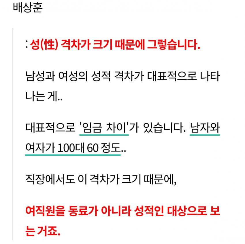 임금을덜받으니 성적인대상으로 본다 이런 현실성 1도없는 얘기는 대체 어떻게 지어내는거냐 이해가 안가네 ㅋㅋ