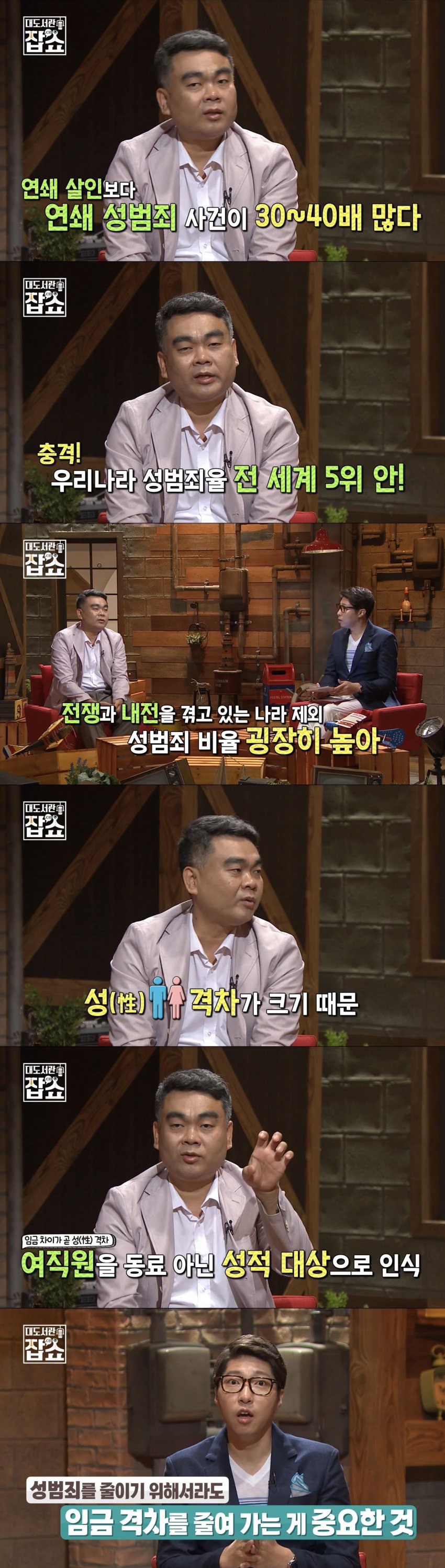 성범죄율이 높은 이유가 임금의 격차때문이고 임금의 격차가 줄어들면 성범죄율이 낮아질거다? 그냥 뭐 말이안되는 얘기