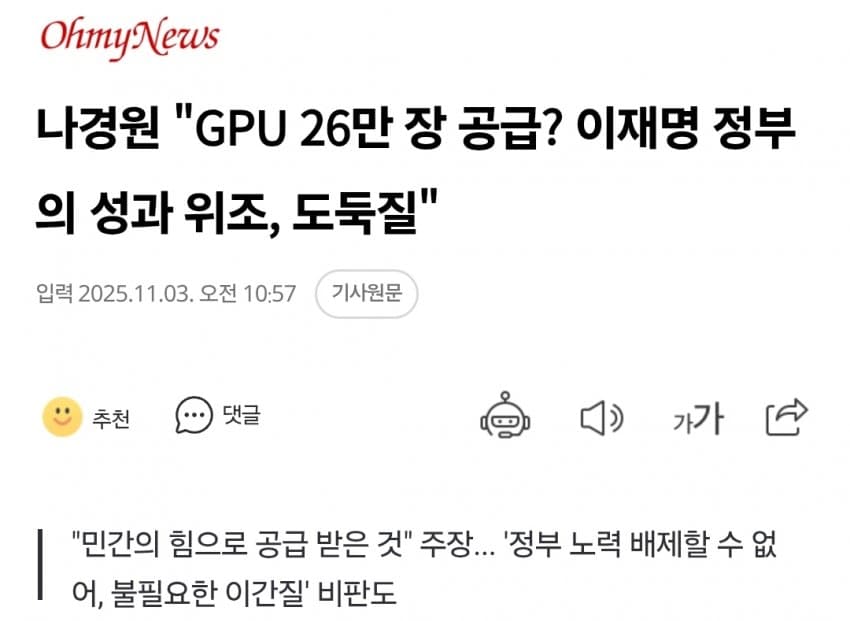솔직히 GPU는 민간업적이지 재명업적은 아니지