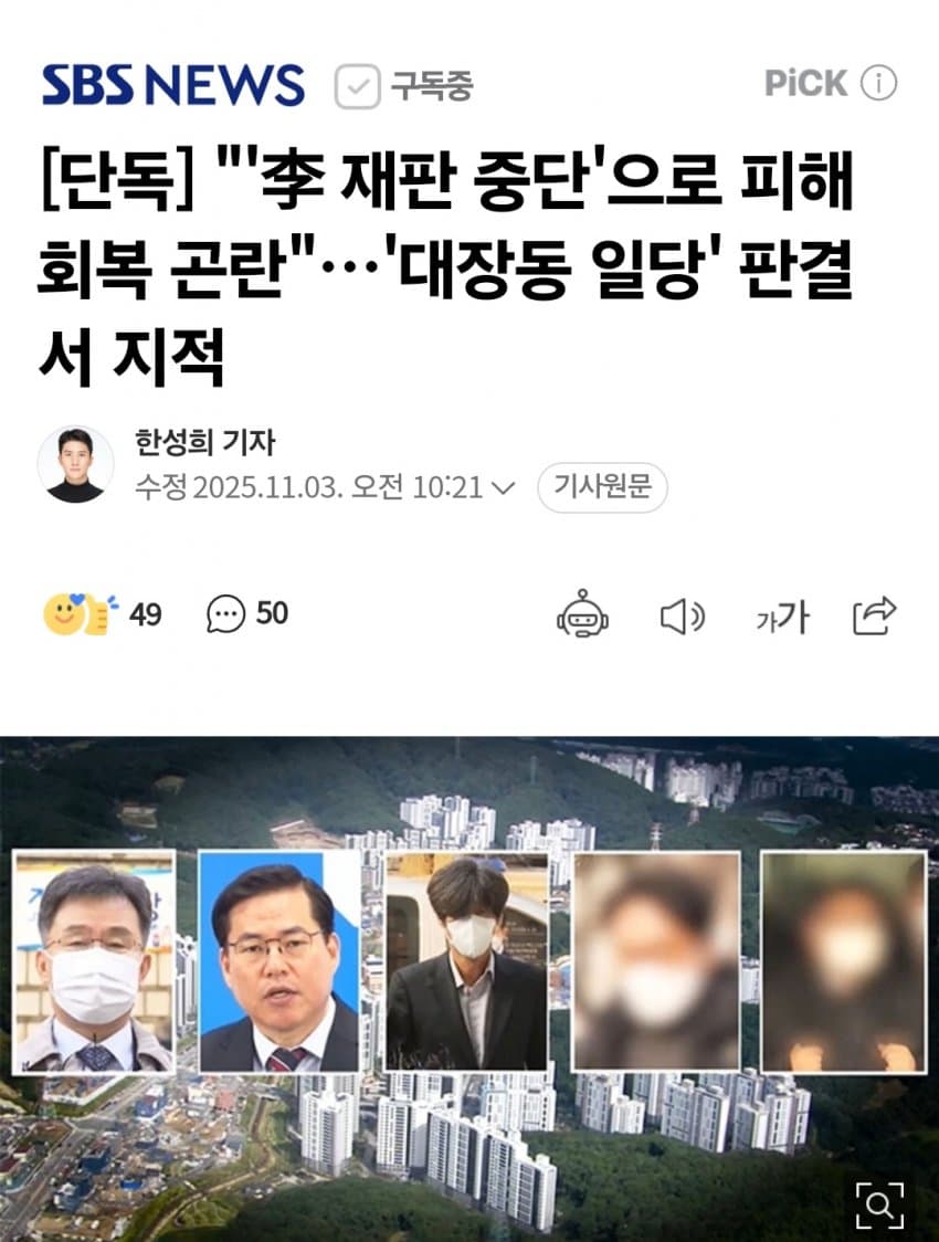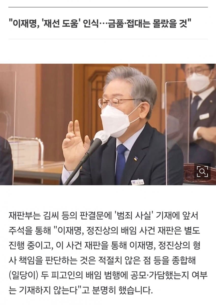 '이재명이 관련이 있는지 판단하지 않는다'흐린눈하는 ㅄ들 눈에 보이는거 = 이재명은 관련이 없대 오오