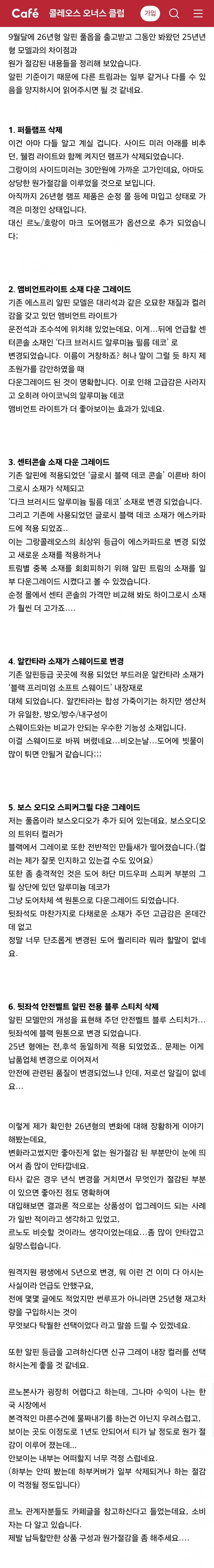 그랑콜레오스 사려는 사람들은 꼭 26년식 말고 25년식을 사도록..