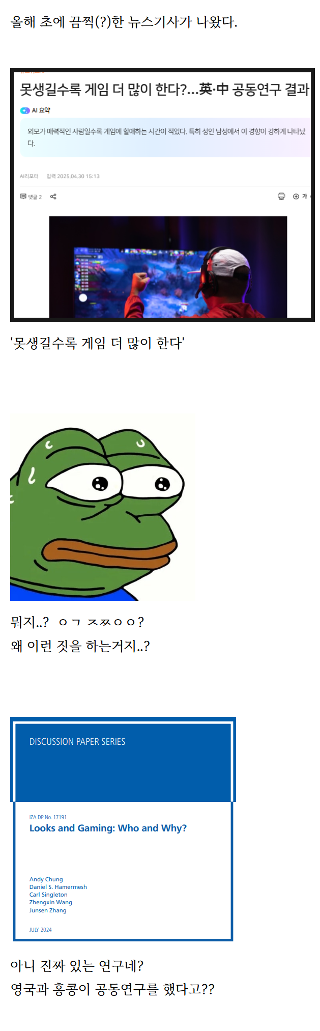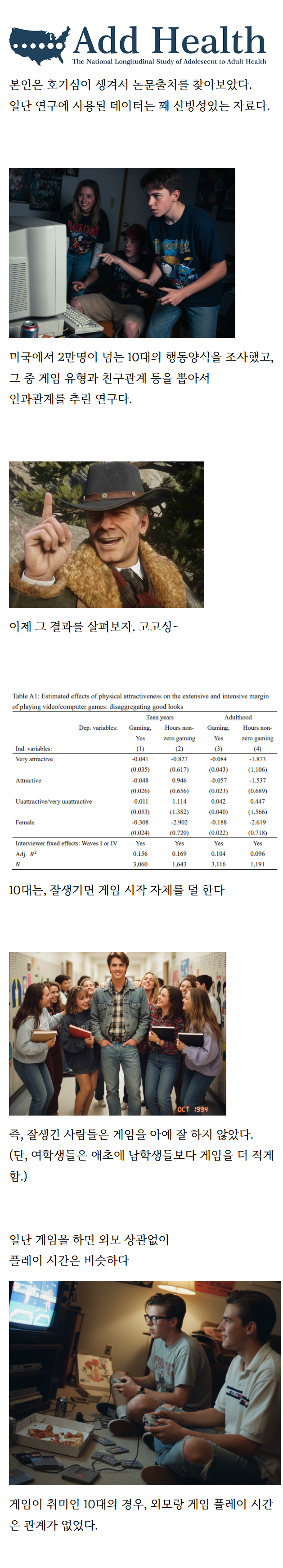 (스압) '못생길수록 게임 더 많이 한다' ← 진짜인지 찾아보았다