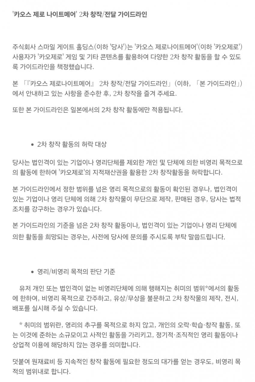 2차 창작을 위해 비공개 정보를 줄 수 있으며
