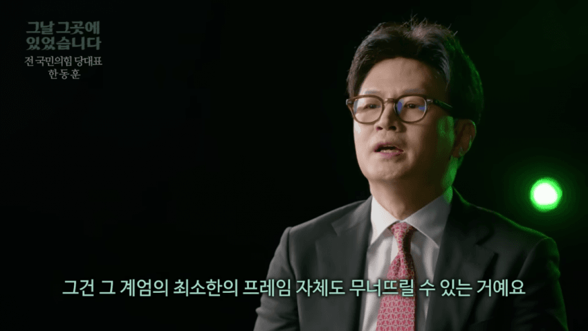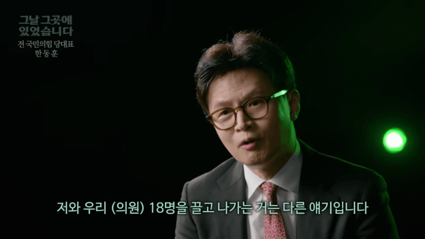 계엄 해제 후에 국힘에 잔류해서 국민의 힘 당 대표로서 국힘 의원들이 2차 탄핵소추안에 찬성하게 만든 것 덕분에 국민의 힘이 국힘 전부가 계엄에 동의하는 건 아니라는 걸로 그나마 연명하는 중이라는 말임