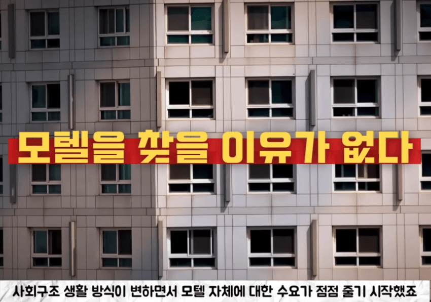 90년대생들 결혼할사람들은 다 결혼해서 모텔갈이유가없지 ㅋㅋㅋ요즘 00년대생들은 애초에 인구수자체가 확줄었으니