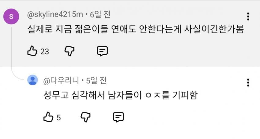 아니 어떻게 시발 혈기왕성한 나이에 섹스가 포기가 되지? 나라 미쳐 돌아가네