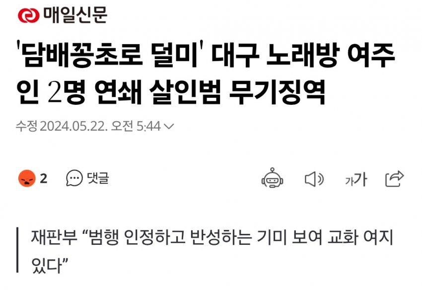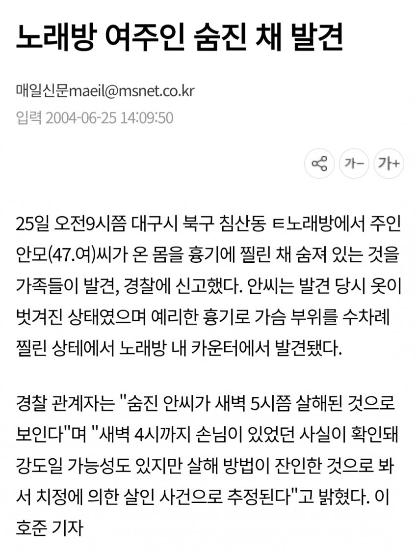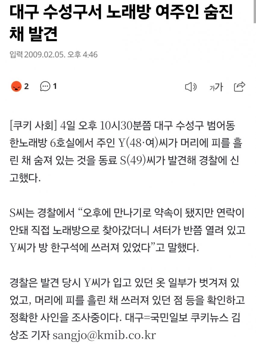 대전 같으면 살해당한 노래방 주인이 가해자로 둔갑됨ㅋ